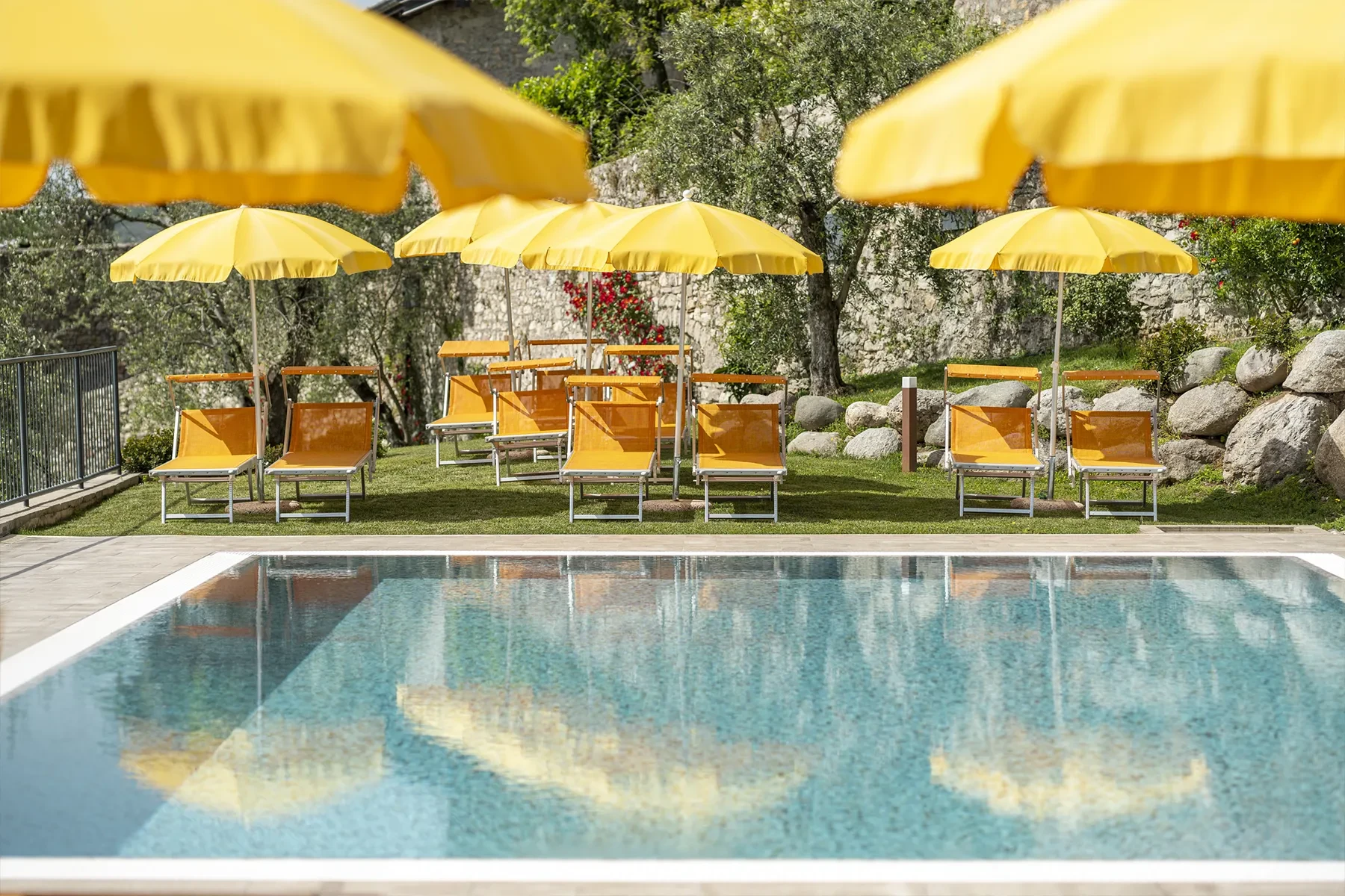 - Parco giardino con lettini e ombrelloni
